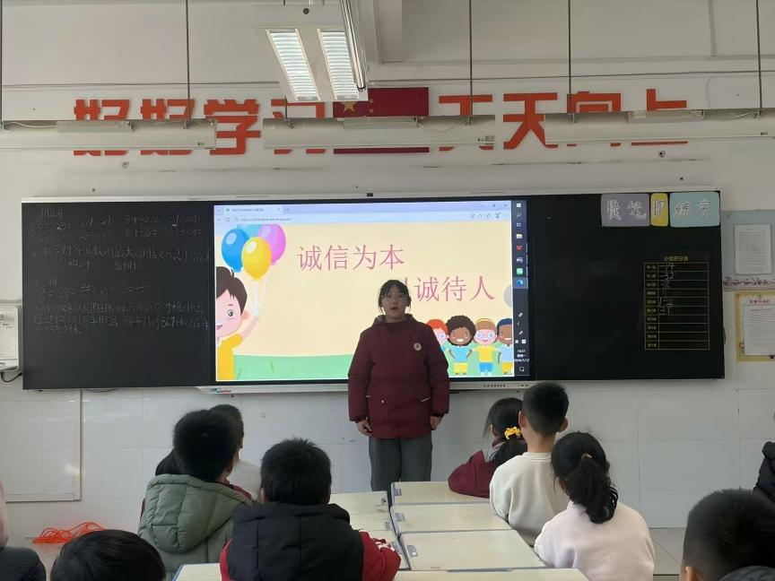 各班以"诚实守信,做美德少年"为主题开展班会活动。班主任通过案例分析、情景演绎和小组讨论,引导学生探讨"诚信的意义"与"践行诚信的方式"。孩子们主动分享自身的守信经历,也坦诚反思失信的小遗憾,还共同制定了班级诚信公约,在宣誓与签名中,将诚信做人的准则深深扎根在心底。