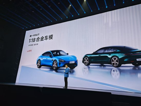 小米集团创始人雷军现场“带货”:“我给大家推销一个很畅销的(车载配件),就是刚刚上架的新一代SU7合金车模,有卡布里蓝和靛石绿两款,售价499元,如果喜欢的话动作一定要快。”