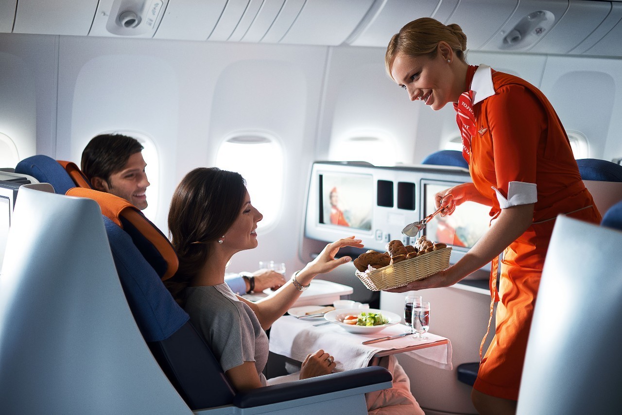 贴心的空中管家服务无处不在,登机时公务舱客人可免费寄存外衣,不再担心您心爱的外套在航行中“受尽委屈”。夜晚熄灯前,空乘人员会悄悄的在您的小餐桌上摆放一瓶矿泉水,缓解夜晚干燥引起喉咙的不适感。如果您失眠,无法入睡,就会有各种小吃干果等食品送到,边吃边看电影也是不错的选择。