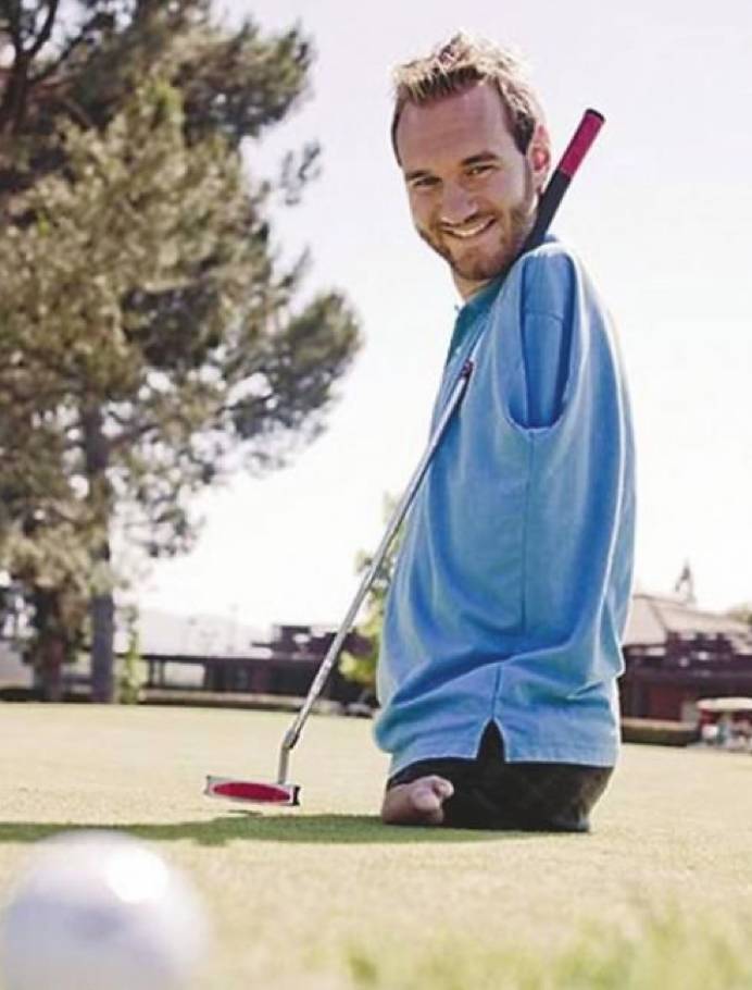 尼克·胡哲:没有四肢的演讲家胡哲1982年出生于澳大利亚,天生没有四肢。小时候胡哲饱受同学的嘲笑和欺侮,十岁时曾试图在浴缸溺死自己。但父母没有放弃对他的教育,2003年,胡哲大学毕业,并获得会计与财务规划双学士学位 。2005年被提名为“澳大利亚年度青年”。2010年他出版自传式书籍《人生不设限》。他在五大洲超过25个国家、举办1500多场演讲,成为世界上最知名的演讲家之一。