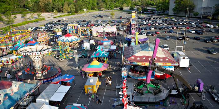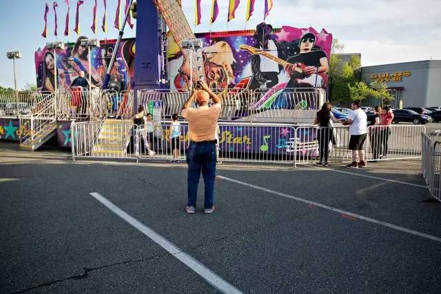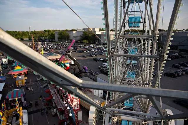 5月1日,在马里兰州的格伦伯尼(Glen Burnie),马利车站购物中心(Marley Station Mall)的停车场举办了梦想乐园游乐嘉年华,摩天轮就伫立在空无一人的购物中心左边。