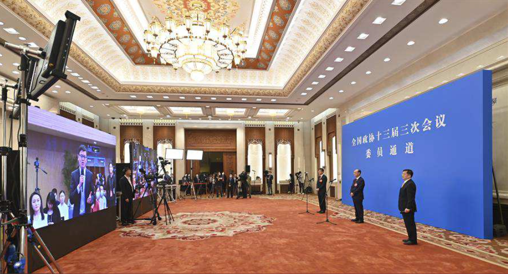 今年的“委员通道”很特别:采访形式改为网络视频采访,采访时间也大大缩减。政协委员在人民大会堂新闻发布厅回答问题,记者们则保持社交距离,在梅地亚多功能厅提问。