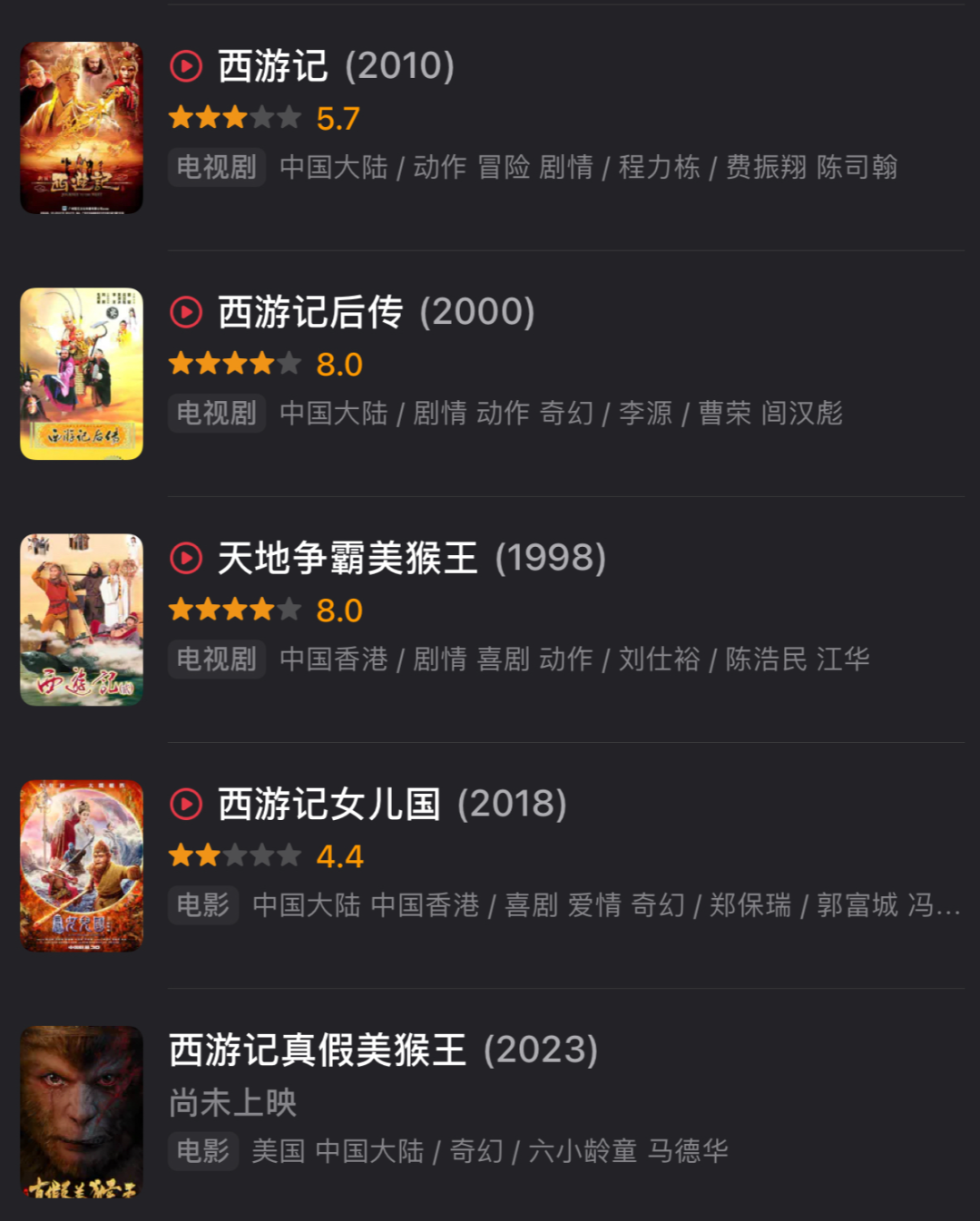 除了《还珠格格》,《西游记》、金庸武侠剧等同样也是翻拍剧中的主要目标。