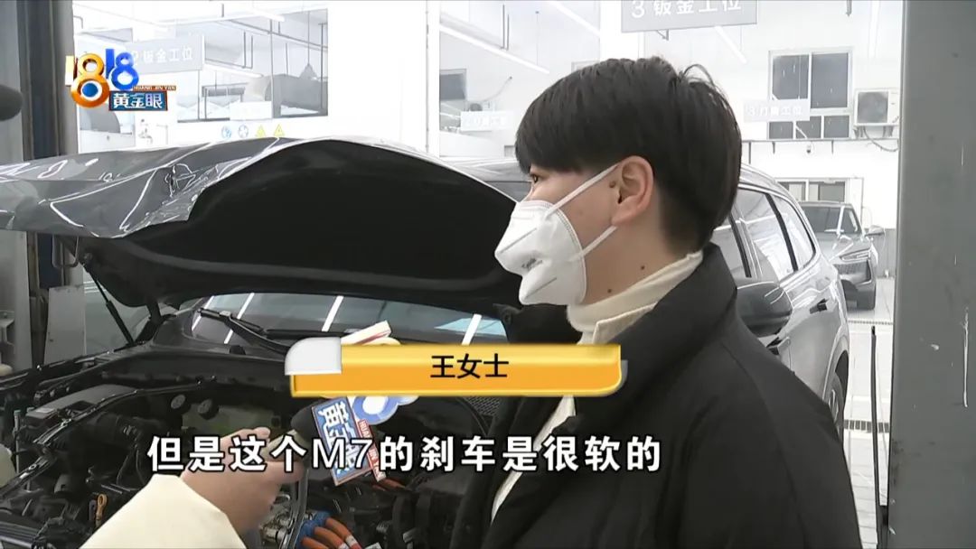 王女士:“我觉得M5的车子开得还可以,但是这个M7的刹车是很软的,但是没有想到这个车子,无论从服务上面还是产品质量上,现在真的让我无法接受的。”