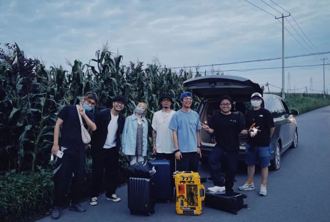 在东北堪景时,团队的车抛锚了,主创们从车上下来,把行李拖下了车,等待救援。那一刻,夕阳悬挂在玉米地上,辛爽就着夕阳,给团队拍了一张照片。