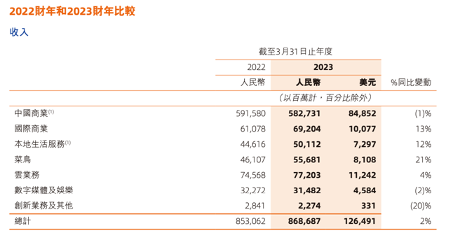 阿里巴巴集团7月21日晚间发布2023财年年报。2023财年,阿里巴巴实现营收8686.87亿元(约合1264.91亿美元),与2022财年的8530.62亿元相比增长2%。