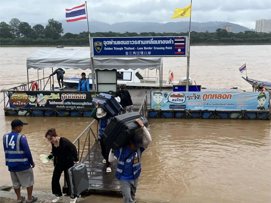 位于泰国清盛码头的“金三角”过境口岸,渡过湄公河就是老挝“金三角”特区,船上往来的一半以上是中国人。