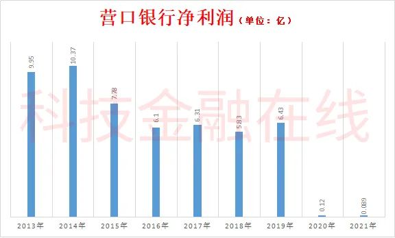 营口银行最新财务数据披露到2020年第三季度,不过评估报告显示,2020年-2021年间,该行业绩整体大幅下滑,尤其是净利润两年间已经下降近99%。