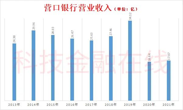 2021年,营口银行营业收入17.07亿元,同比增长2.59%;但其净利润进一步下滑至892.3万元,同比减少27.92%。