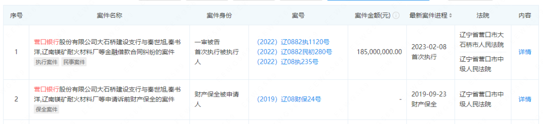辽宁金鼎镁矿作为失信被执行人,涉案金额2.34亿。作为被告,其涉诉案件金额35.1亿。