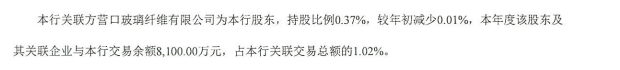 根据营口银行2019年年报,第一大股东辽宁群益集团与营口银行关联交易余额为12.73亿;第二大股东辽宁金鼎镁矿集团有限公司关联交易余额为11.93亿;营口玻璃纤维有限公司关联交易余额为8100万元。