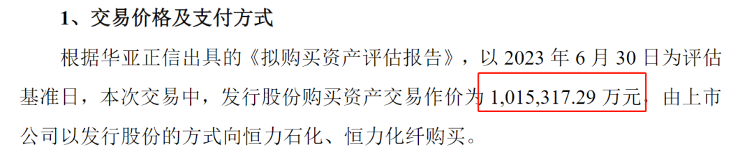 其次是发行股份购买资产,大连热电拟以发行股份购买资产的方式,购买恒力石化持有的康辉新材66.33%股权、恒力化纤持有的康辉新材33.67%股权。本次交易完成后,大连热电将持有康辉新材100%股权。经交易各方商议,本次发行股份购买资产的价格为4.42元/股,发行股份购买资产交易作价为101.53亿元。