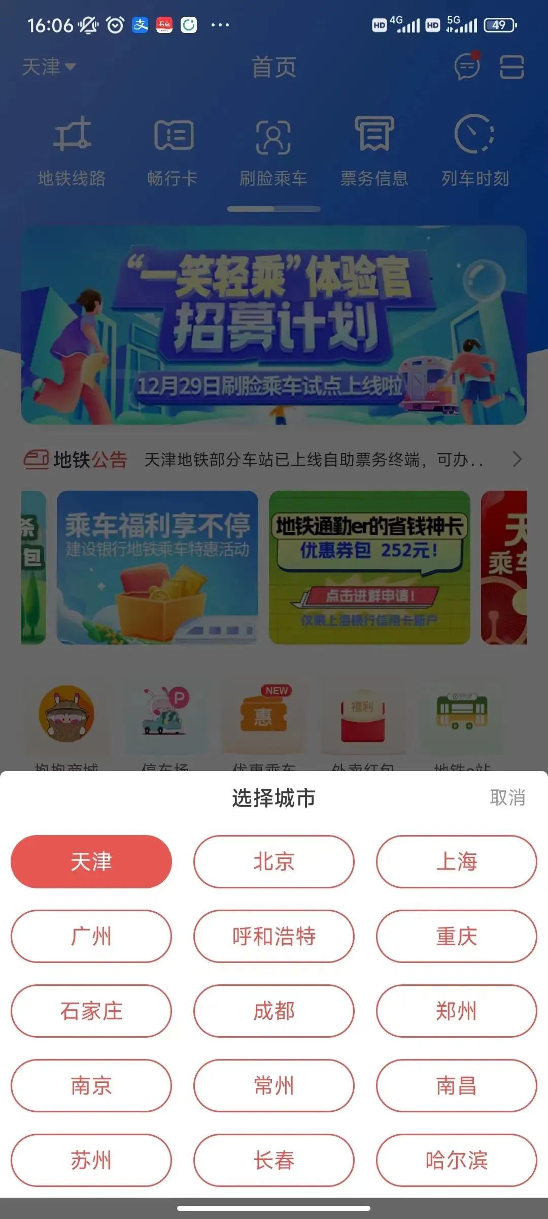 哈尔滨火了,长春文旅也发力了,春节想打卡哈尔滨、长春吗?天津地铁为您想到了。为便捷乘客假期出游,天津轨道交通集团所属线网管理公司积极拓展跨城扫码互通城市范围,自2024年1月22日起,天津地铁App将与长春、哈尔滨轨道交通App实现跨城扫码互通功能。在寒假、春节期间,乘客跨城出游、假期旅行将会更加便利快捷。同时也欢迎全国各地的游客春节期间来天津打卡,美食美景都为您准备好了。