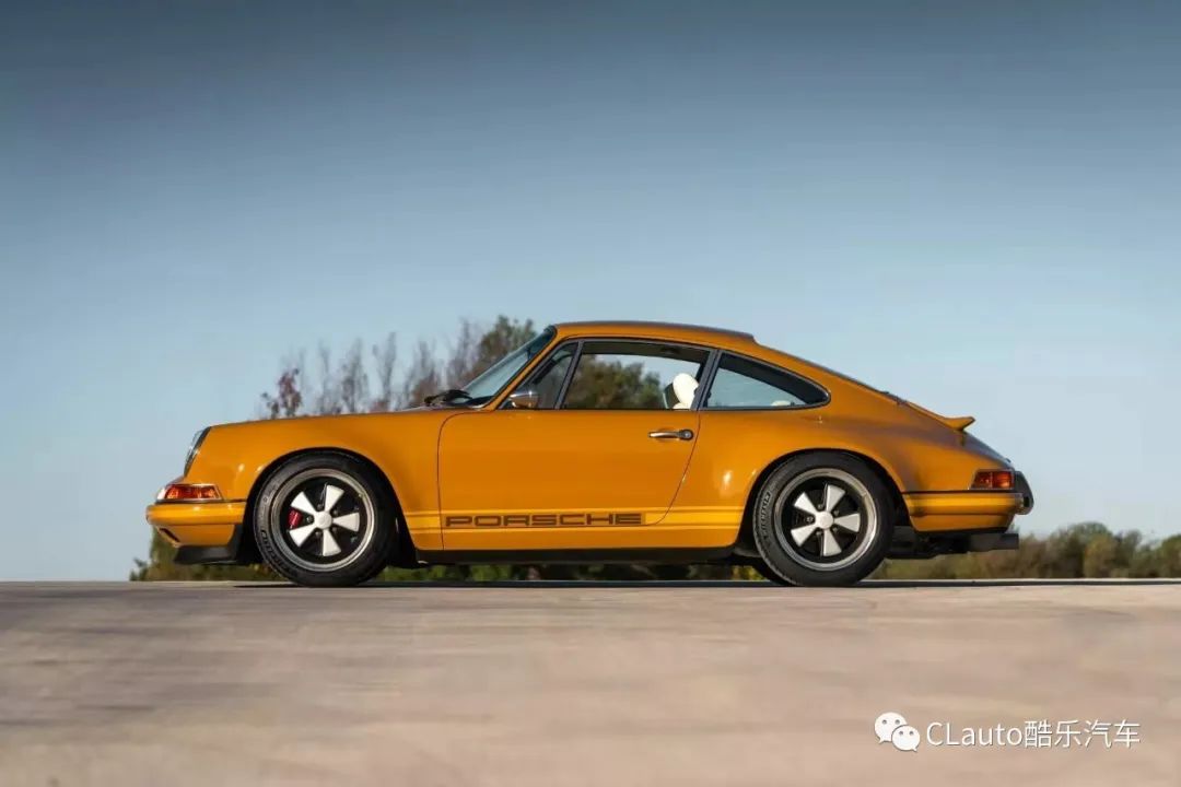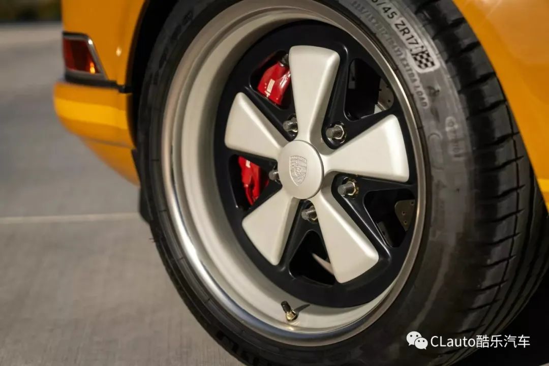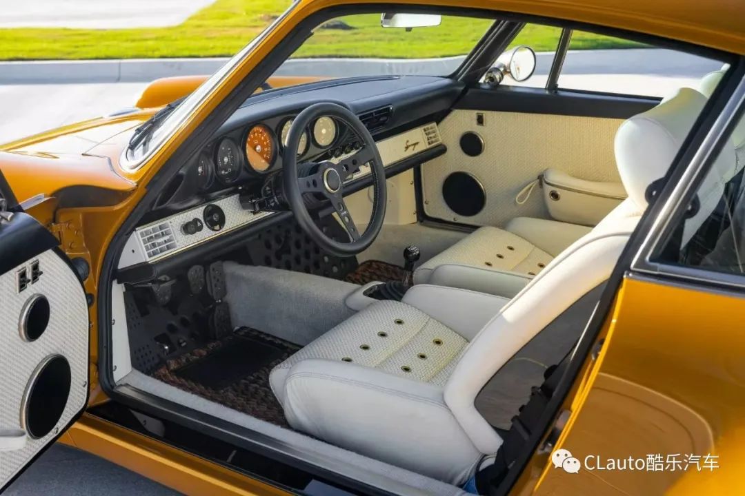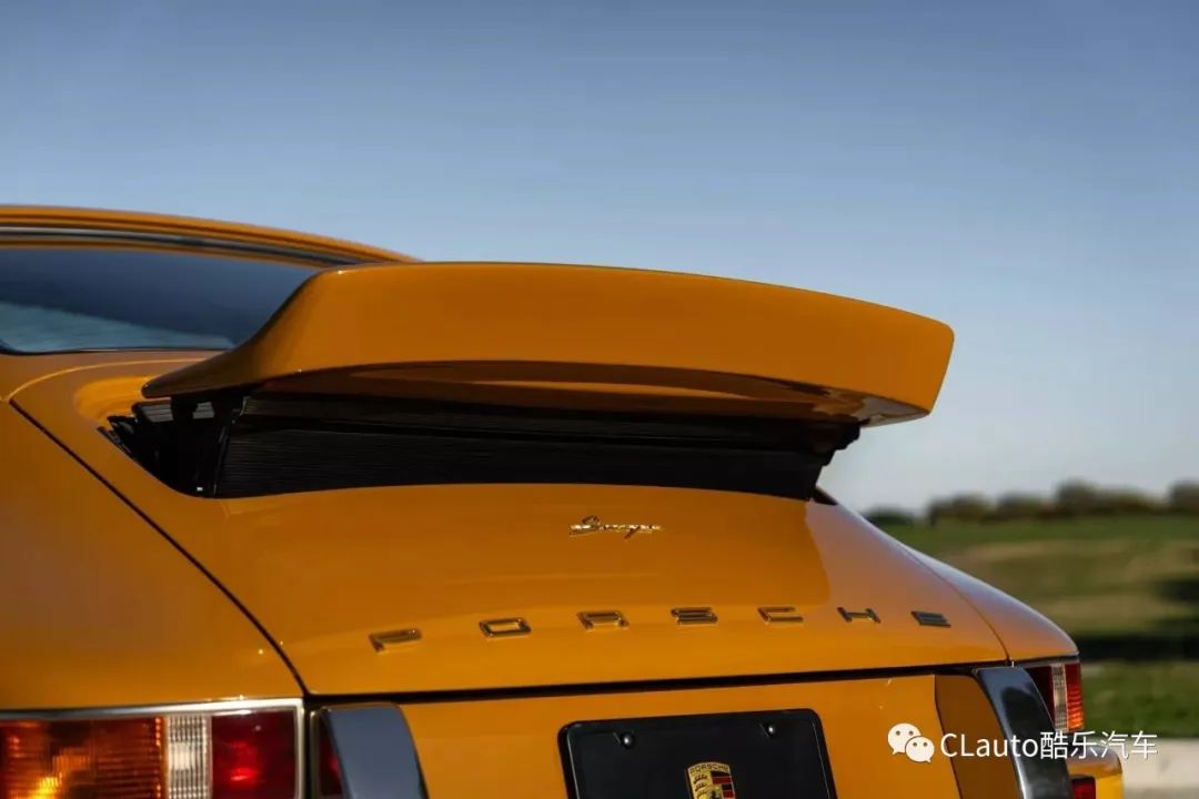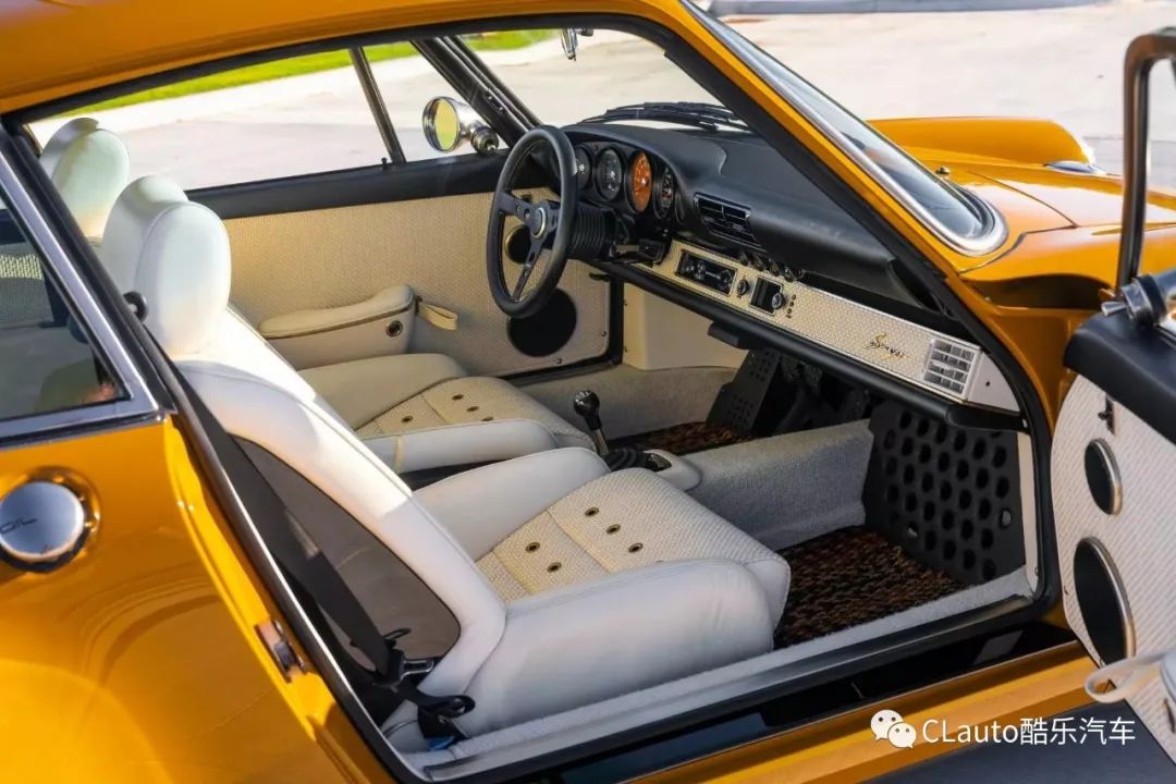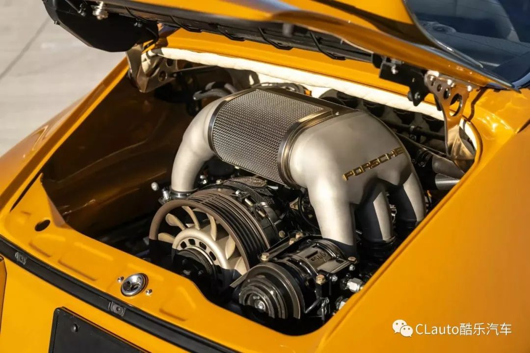 从车身颜色开始,该颜色被称为纳米比亚黄,带有浅色同色系的运动条纹和棕色“Porsche”字样。与其他Singer车型一样,该车的车身、保险杠、引擎盖、后行李箱盖和车顶都采用了轻量化碳纤维制造,原车主选择了引擎盖中央的加油口设计。