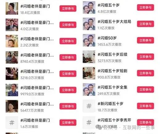 类似题材的短剧如《五十岁的我怀了20岁霸总的孩子》《人到五十,闪婚霸总》等,也频频登上热度榜单。