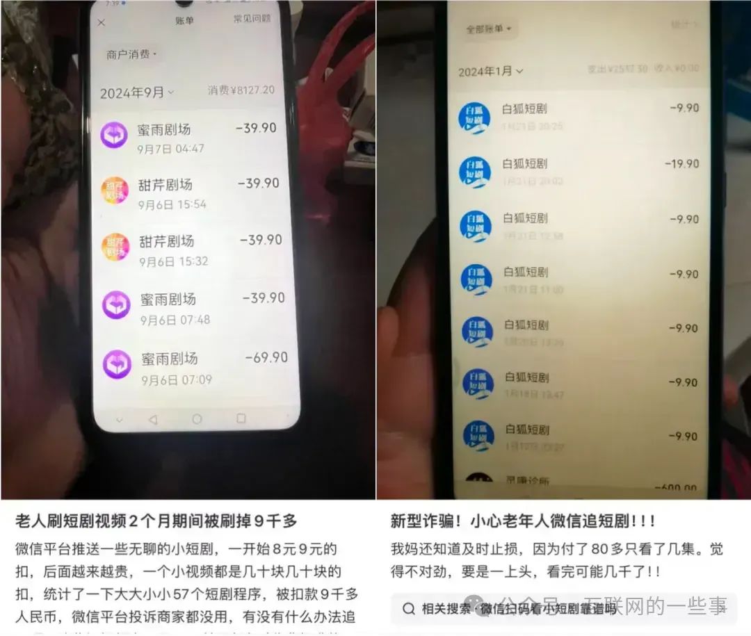 中老年观众对网络内容的辨别力较弱,容易陷入这些短剧的“吸金陷阱”。许多老年人为了观看短剧,不惜花费大量的金钱充值,甚至影响到了自己的生活质量。