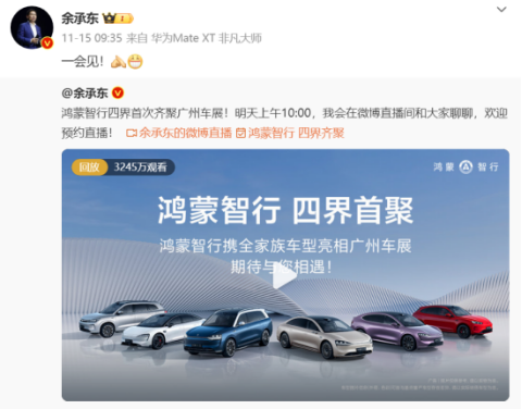 今年11月9日,余承东在微博平台发文宣布鸿蒙智行正式发布一周年。余承东表示,这一年来,公司累计交付突破50万辆,并取得了新势力销冠、50万以上车型销冠的双冠王。鸿蒙智行坚持以用户体验为中心,制定了远高于行业的严苛质量标准,正在联合中国汽车产业伙伴共攀智能电动汽车时代新高峰。