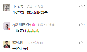 不少70、80后的网友表示哀悼