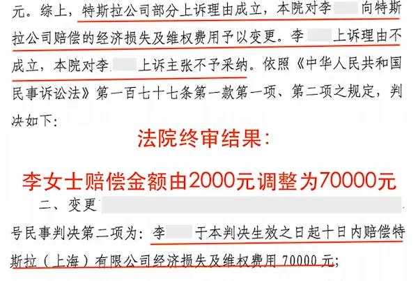 2024年8月,该事件迎来二审判决:李某应赔偿特斯拉的金额,由一审的2000元调整至70000元,车辆经鉴定无故障。