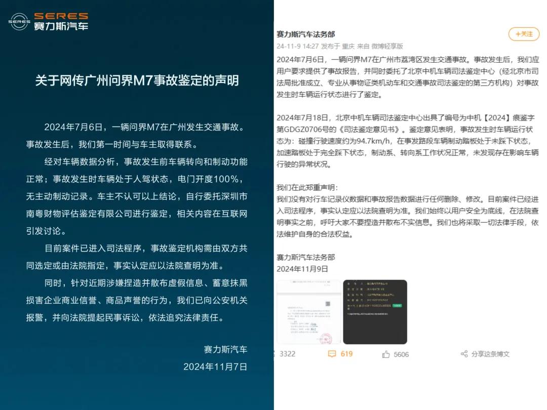 2024年11月9日,赛力斯汽车法务部又发声明: