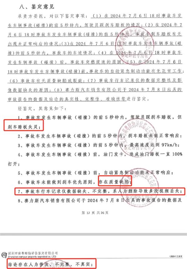 但车主并不认同,2024年11月初,不少博主发布了一份,南粤评估提供的事故鉴定报告。