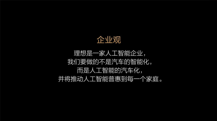 成为一家人工智能驱动的电动车企业,终局是要做电动车,回归的是制造业的逻辑,李想认为理想并不是一家传统意义上的造车公司。