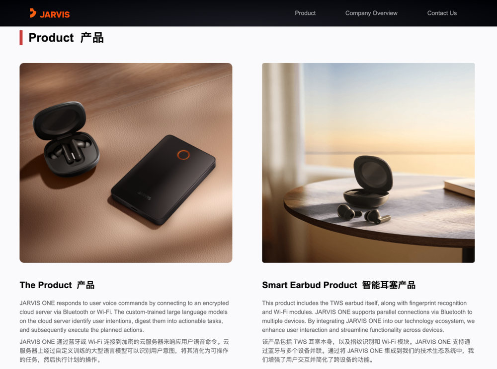 网友通过一顿顺藤摸瓜,其首款AI硬件产品JARVIS ONE也浮出水面。