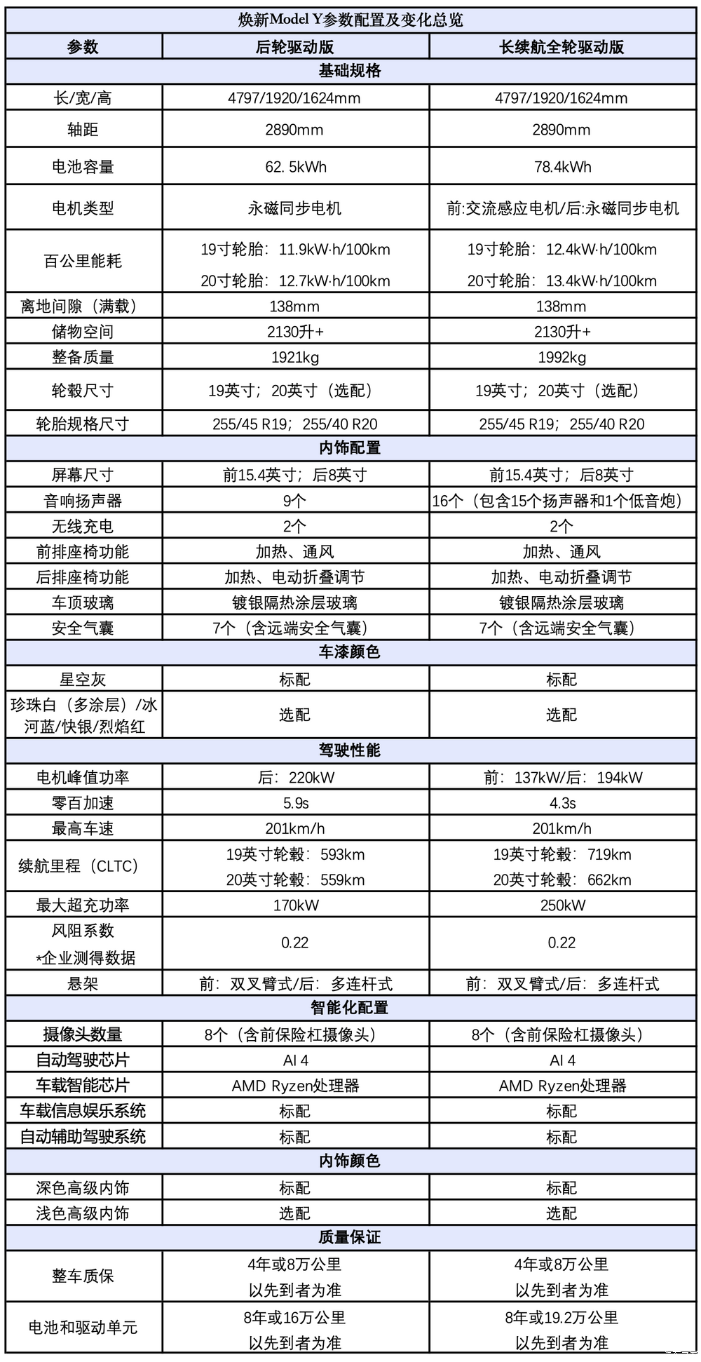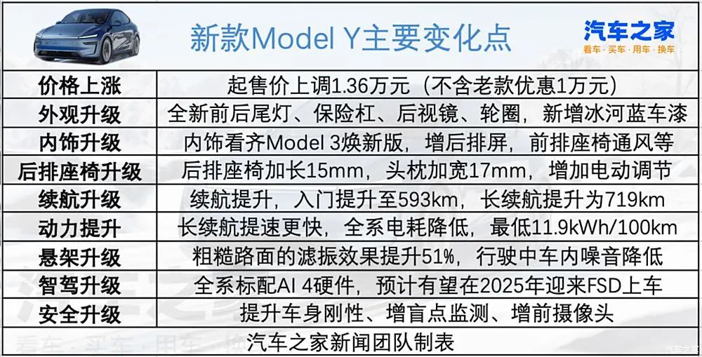 特斯拉Model Y焕新版 官方售价 与 老款车型售价对比 | ||