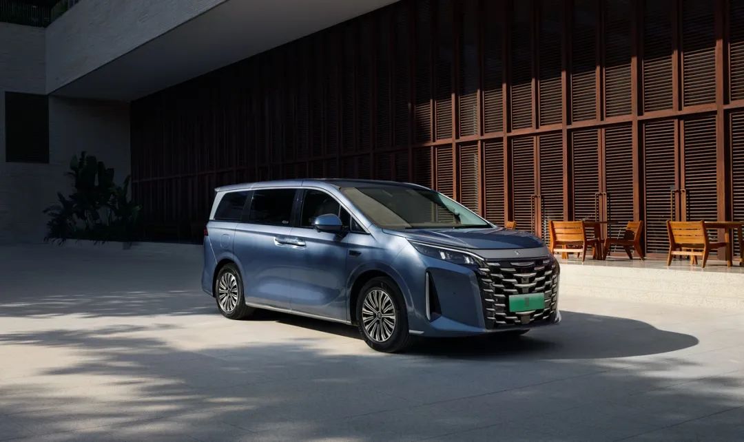 新车定位为中大型MPV,共推出4款车型。前脸采用比亚迪王朝家族的“龙颜”设计,带有镀铬装饰的大尺寸点阵式中网很有辨识度。车身侧面修长,全系标配电动侧滑门,还配备了AR投影自动开门功能。尺寸方面,长宽高分别为5145/1970/1805毫米,轴距为3045毫米。车尾是王朝家族经典的贯穿式尾灯,点亮后极具辨识度。