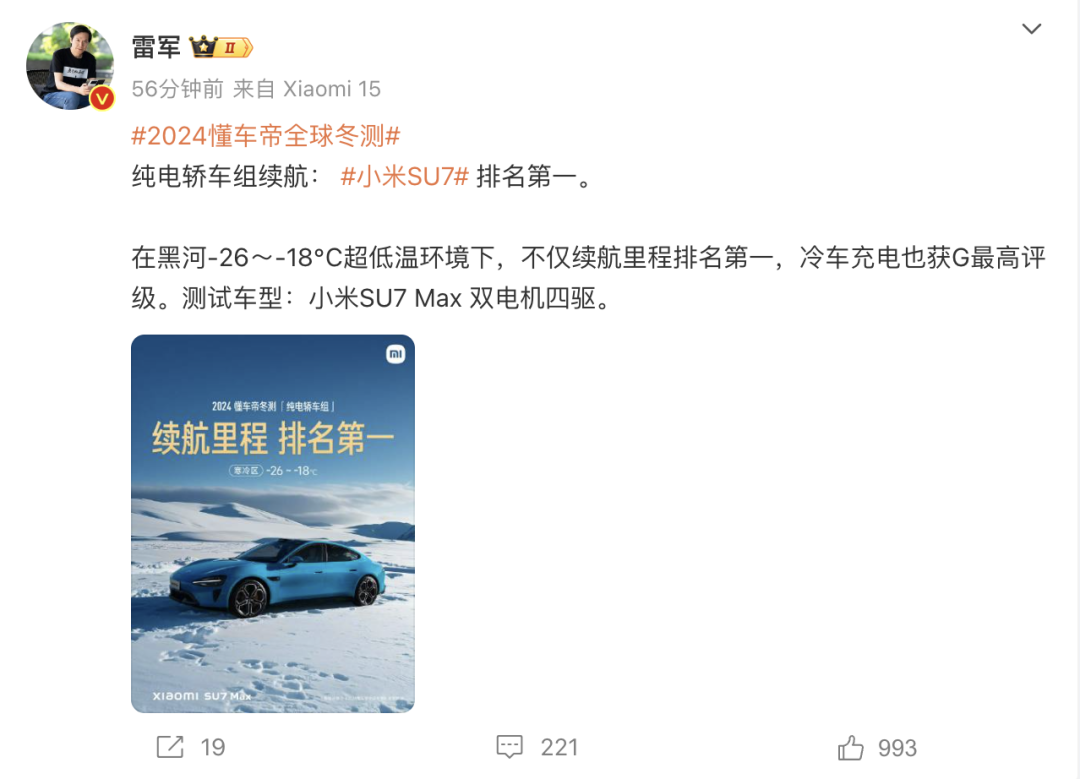 网友评论:“独属于北方车主的安全感”,雷军互动评论称:“小米是北方车场”。