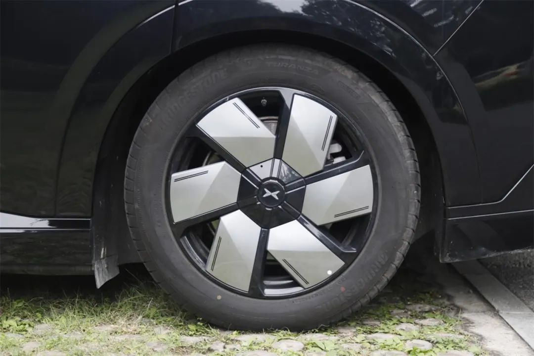 标配 235/55 R19 的轮辋,从整体上看,花 6000 元选装 235/50 R20 的轮辋是值得的,能让科幻色彩更浓郁一些。与之搭配的轮胎据说有三款,米其林 e·PRIMACY 这款以静音和舒适为主的轮胎成为家庭首选,而选择普利司通的泰然者6 则更多是为了降低能耗、提升性能。