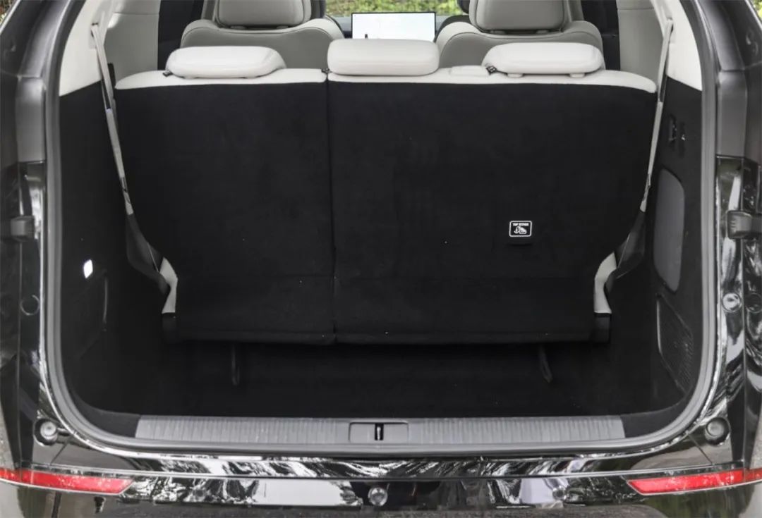 上下车时加长的扶手是加分项,只是侧滑门的开关键容易在上车时被误碰,这点不太理想。空气悬架在上下车时能显现出优势,上车时地板最低能降至 380 毫米。小鹏 X9 的最大亮点就是二排、三排均为全电动控制,不管是进出,还是翻折,哪怕第三排的头枕都是电动升降,这种丝滑的感受真的很棒。行李厢空间可从 755 升扩展至 2554 升,第三排电动收起后能陷入深坑似的后备厢中,能提供一个纯平的空间,这样家庭用户放个婴儿车会很方便。
