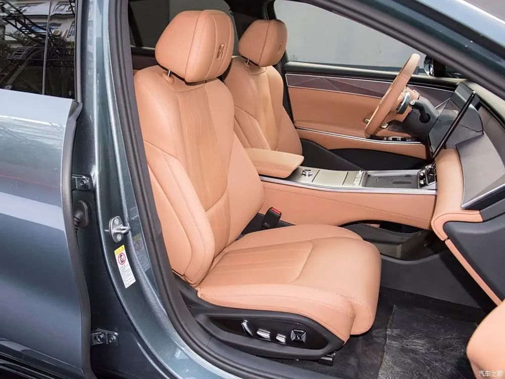 车内座椅采用真皮包裹,前排配备多向电动调节以及加热、通风和按摩功能,后排座椅配备老板键以及触控面板,同时四个门窗均采用双层玻璃提升静谧感。配置方面将提供车载冷暖冰箱、香氛系统,前排手机无线充电以及丹拿音响以及天神之眼智驾系统等等。