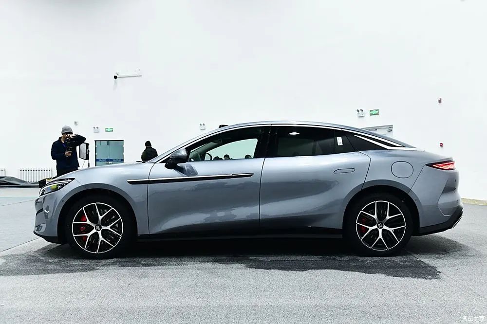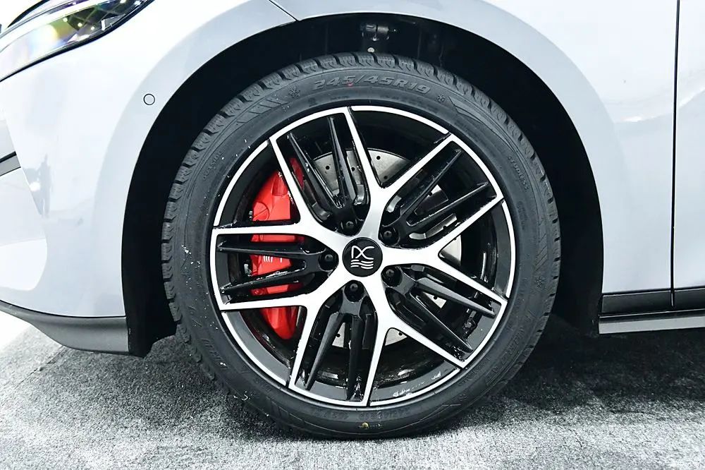 来到侧面,翼子板处的“龙须”设计更加修长,并与前门把手巧妙地衔接在一起。其C柱造型灵感源于“撇捺”,展现出更强的视觉张力。车身尺寸方面,汉L的长宽高分别为5050/1960/1505mm,轴距为2970mm。实拍车型搭载R19轮圈,双色造型搭配红色卡钳很有运动风格。