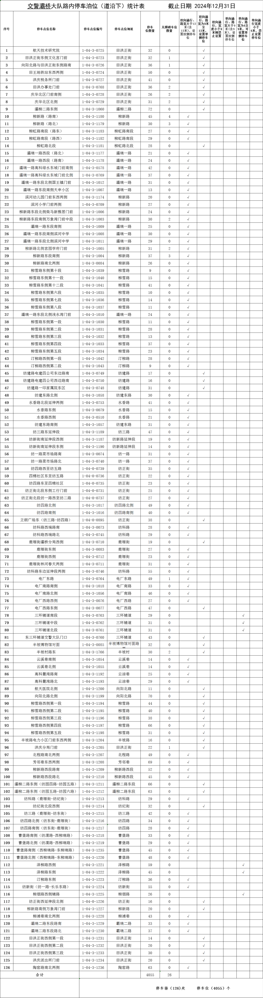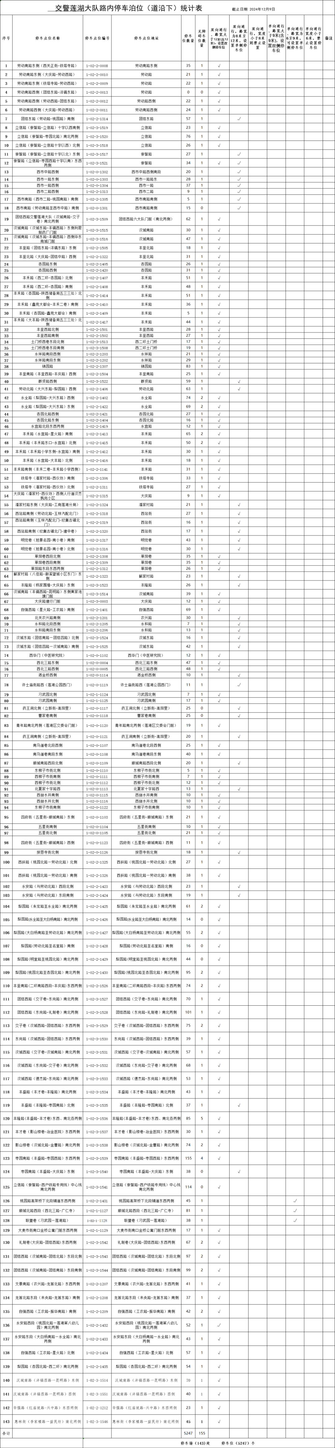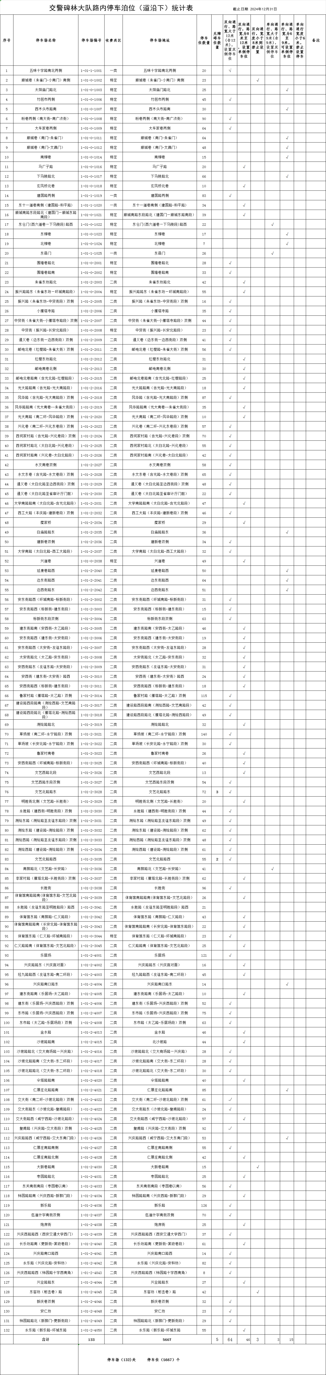 占道停车泊位予以公示