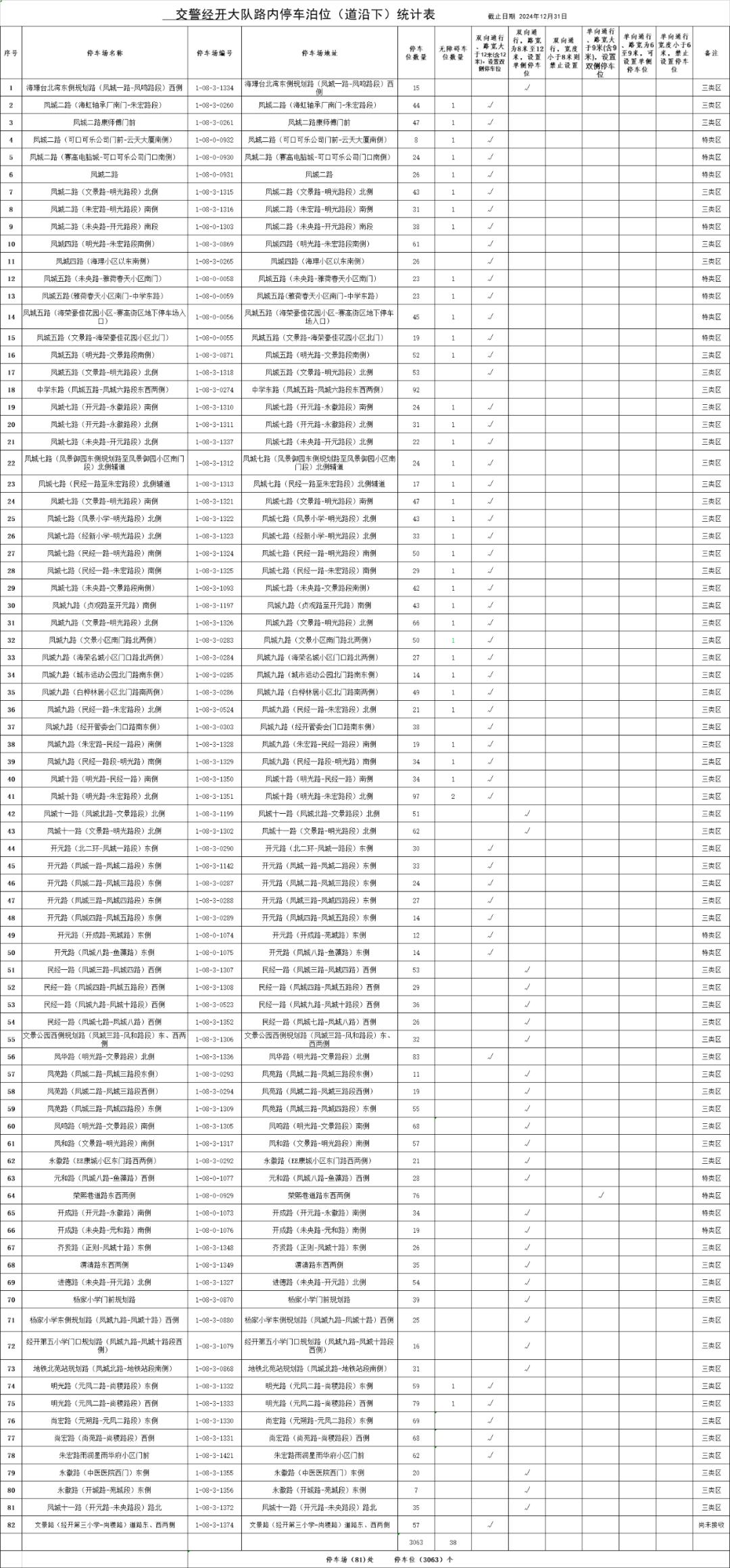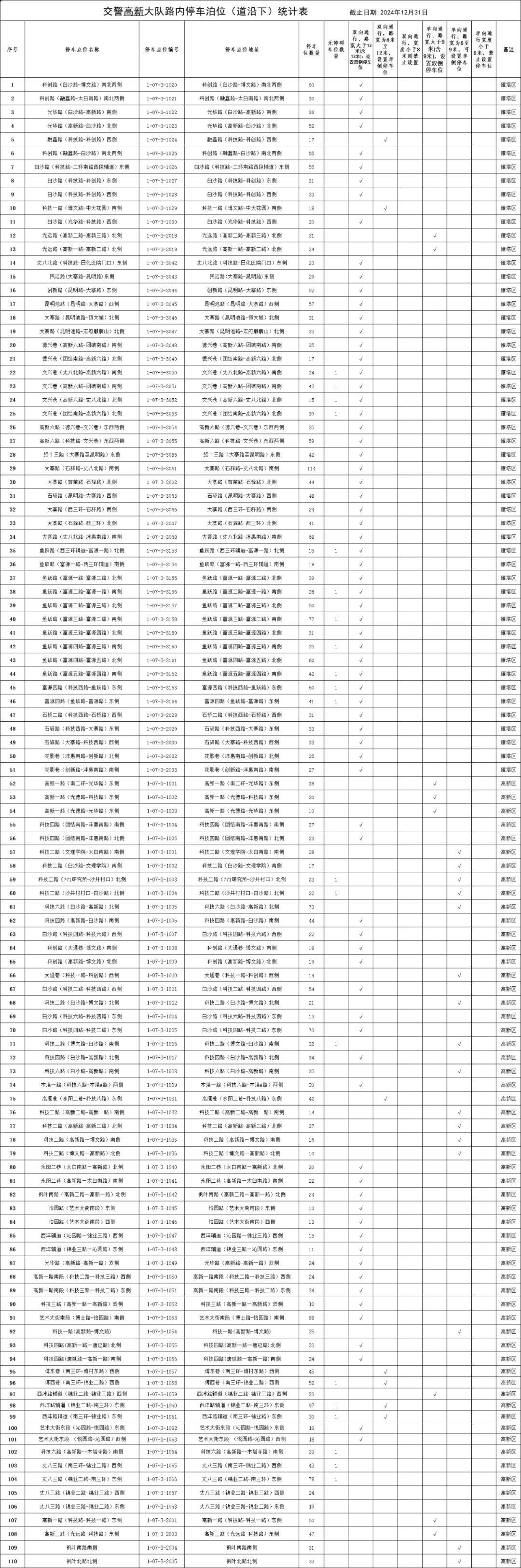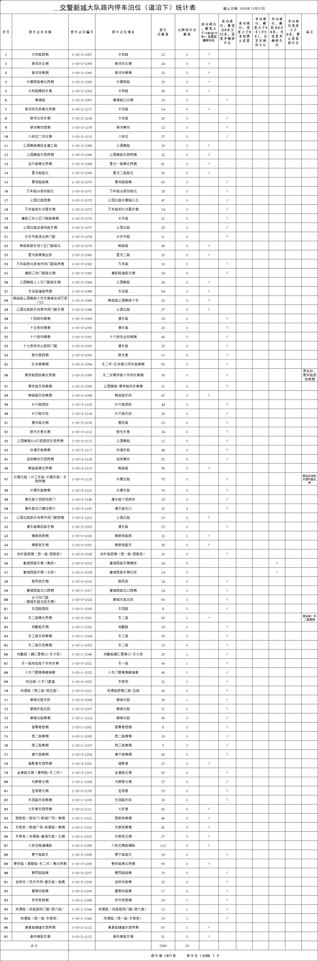 占道停车泊位予以公示