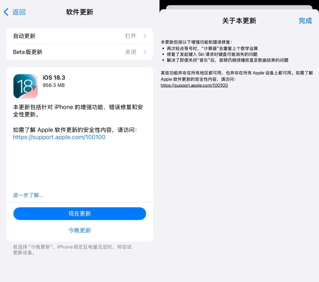 最后是苹果这边,今天苹果正式推送了iOS 18.3正式版。