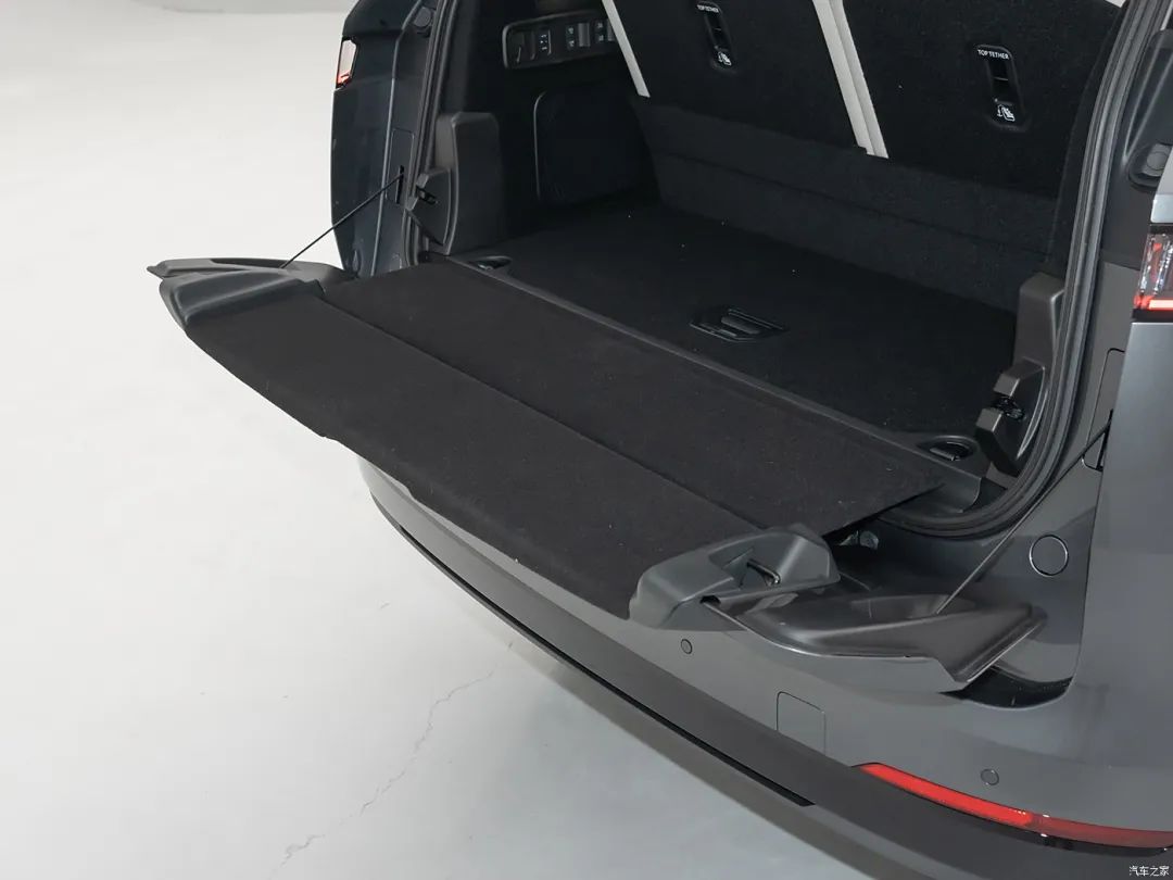 车尾采用电动天地尾门,地门承重可达300kg,可实现户外露营、钓鱼、物品摆放拓展场景。智感流光交互尾灯由8行2400颗灯珠组成,每一颗都能独立控制。尾灯智慧灯语场景支持用户自定义。