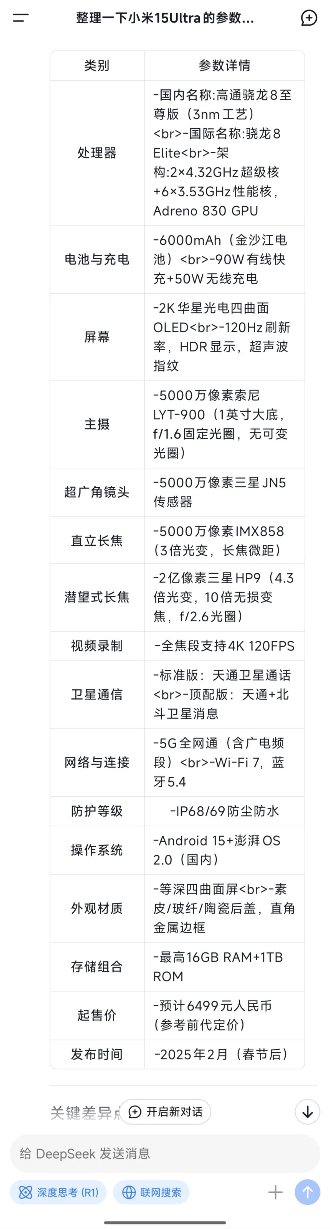 配置方面此前有不少爆料,我们让最近爆火的AI平台DeepSeek收集下相关信息,供大家参考~