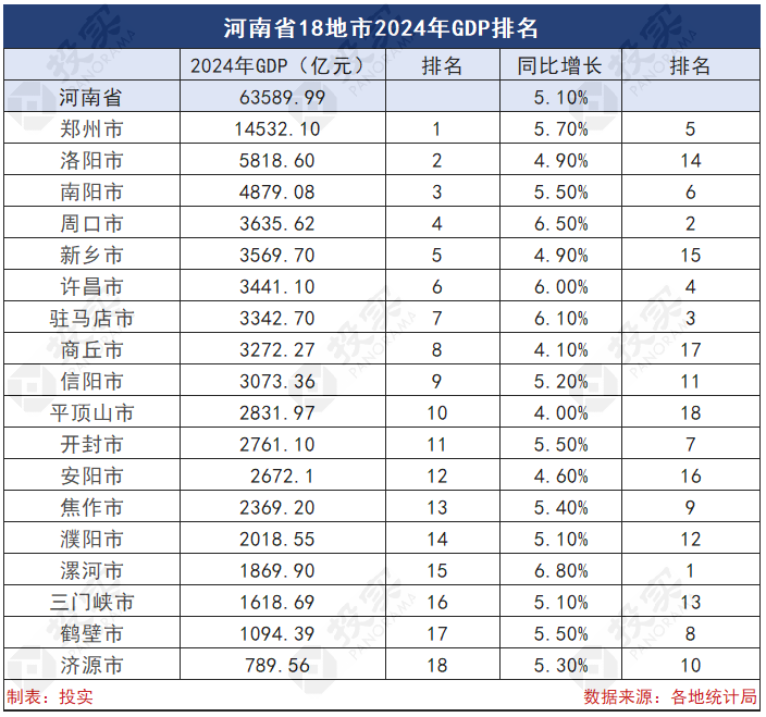 投实消息:河南省18地市最新经济数据全榜单出炉,9市GDP超过3000亿。