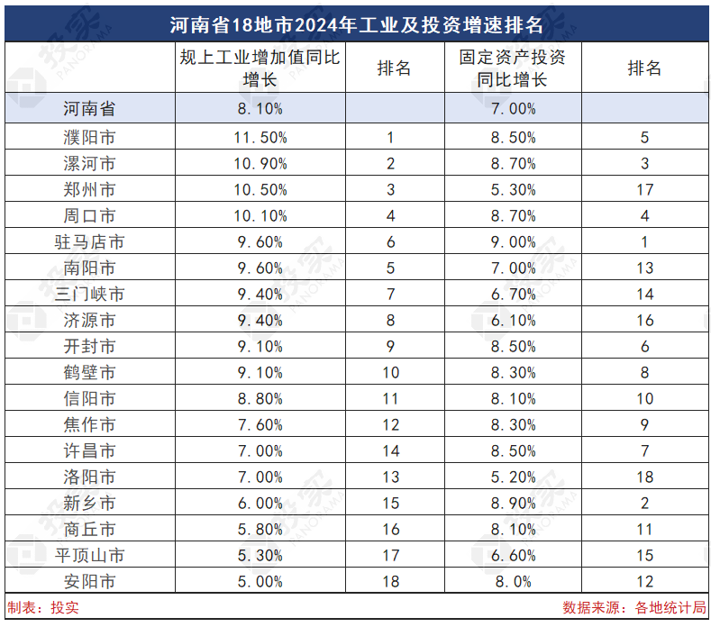 值得注意的是,去年全省固定资产投资增速排名最后的为郑州、洛阳,去年固定资产投资增速分别为5.3%、5.2%,投资增速排名首位的是驻马店市,固定资产投资增长9%。