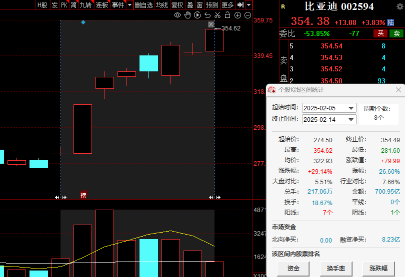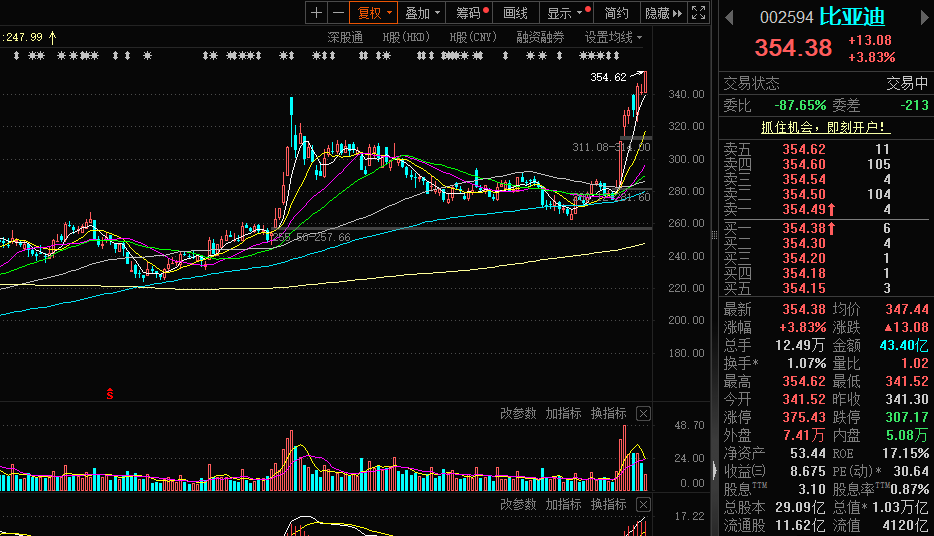继市值重回万亿后,比亚迪A股今日股价创出历史新高。在过去的8个交易日内,其累计涨幅近30%。