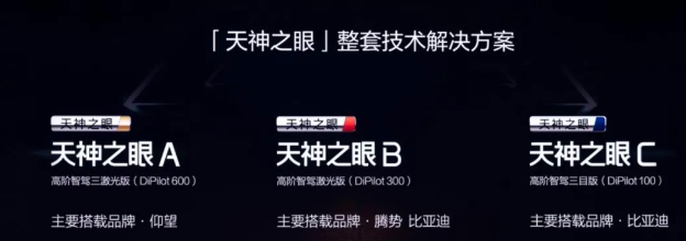 天神之眼C无激光雷达,支持高速领航和代客泊车,用在比亚迪入门车系。