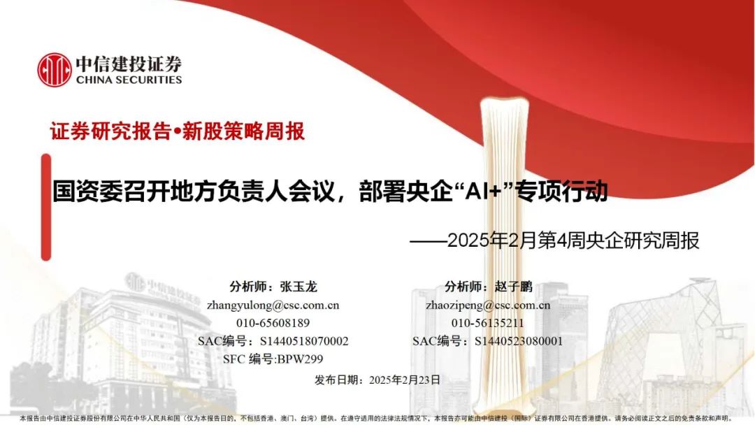 证券研究报告名称:《国资委召开地方负责人会议,部署央企“AI+”专项行动 ——2025年2月第4周央企研究周报》