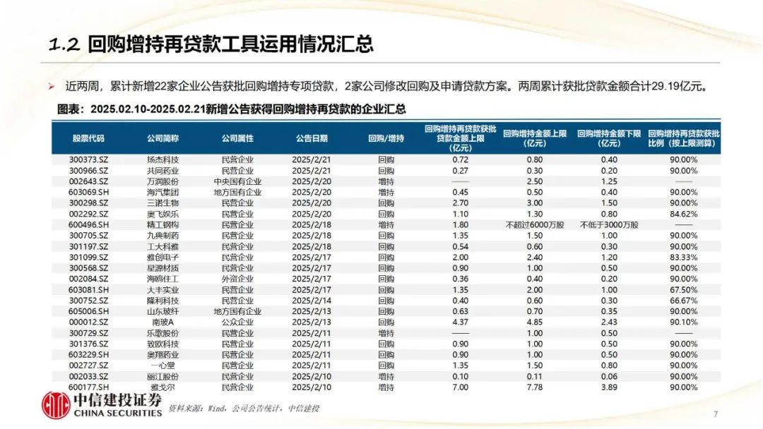 本周新增央企增持1起,为万润股份股东鲁银投资计划增持不超过2.5亿元的股份。近两周新增22家企业公告获批回购增持专项贷款、2家公司修改回购及申请贷款方案;累计获批贷款金额合计29.19亿元。