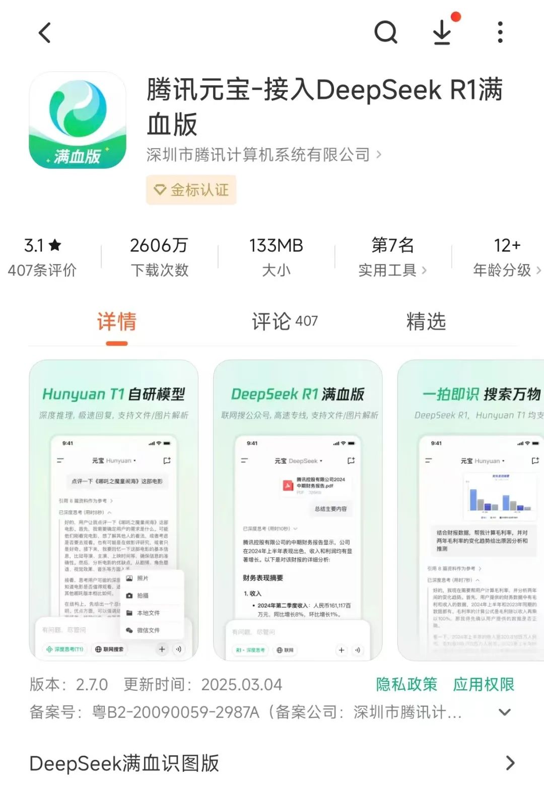这让元宝无论是响应速度,还是多模态能力(图片理解、文件解析),都有了显著提升,方便用户使用。