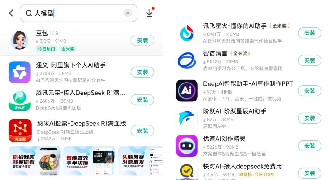 从业者表示,双模型策略(既接入外部的DeepSeek,又有自研的Hunyuan大模型),是元宝的最大优势,热门的两大AI通用型应用——Kimi、豆包,目前都只内置自研大模型。