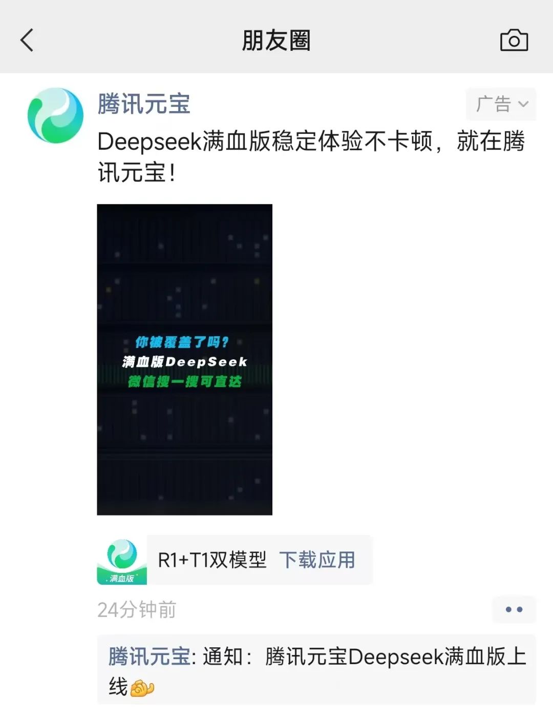 元宝又在DeepSeek-R1官网频繁繁忙的情况下,凭借稳定使用优势,承接住了DeepSeek用户,通过投流进一步扩大了用户覆盖面。