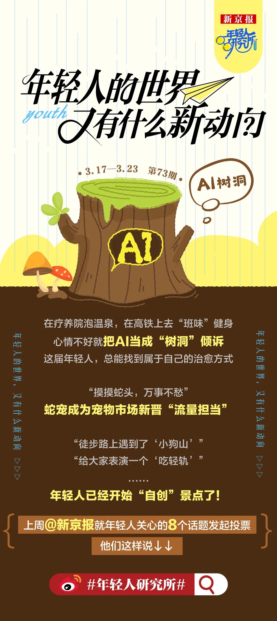 上周新京报官方微博就年轻人关心的8个话题发起投票