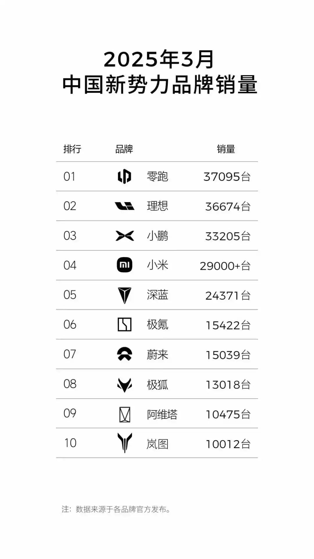 3月,零跑汽车单月交付量为37095辆,同比增长超154%。零跑也成功跻身已公布销量新势力品牌,销量榜首的位置。